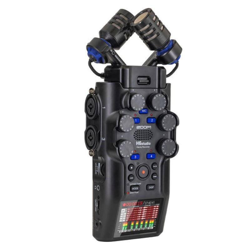 La H6studio incluye cuatro entradas XLR/TRS bloqueables, alimentación phantom de +48 V y soporte para nivel de línea de +4 dBu. También cuenta con una entrada minijack estéreo con alimentación phantom.