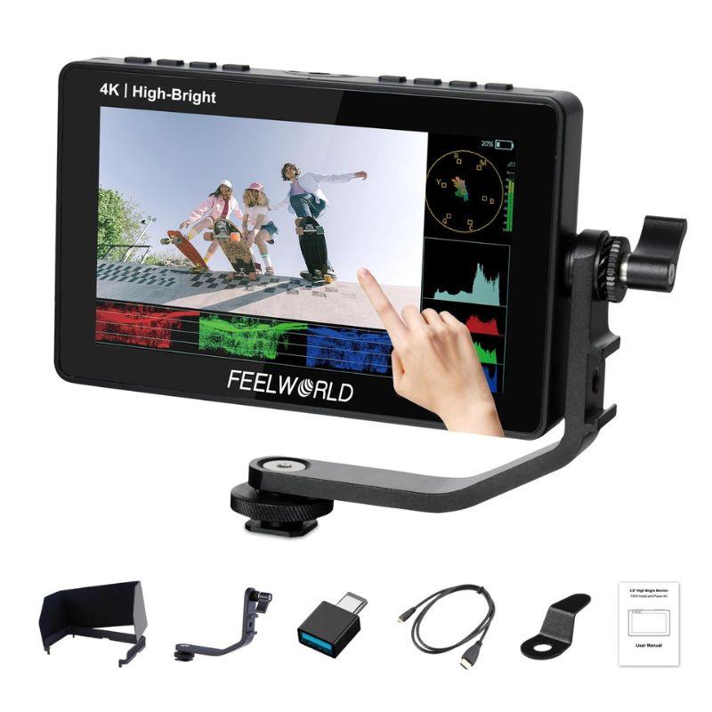 El monitor FeelWorld F5 Pro X es ideal para fotógrafos y cineastas que buscan una calidad de imagen superior y facilidad de uso. Este monitor táctil de alta resolución ofrece una claridad excepcional gracias a su pantalla IPS de 5,5 pulgadas con una resolución de 1920 x 1080p.