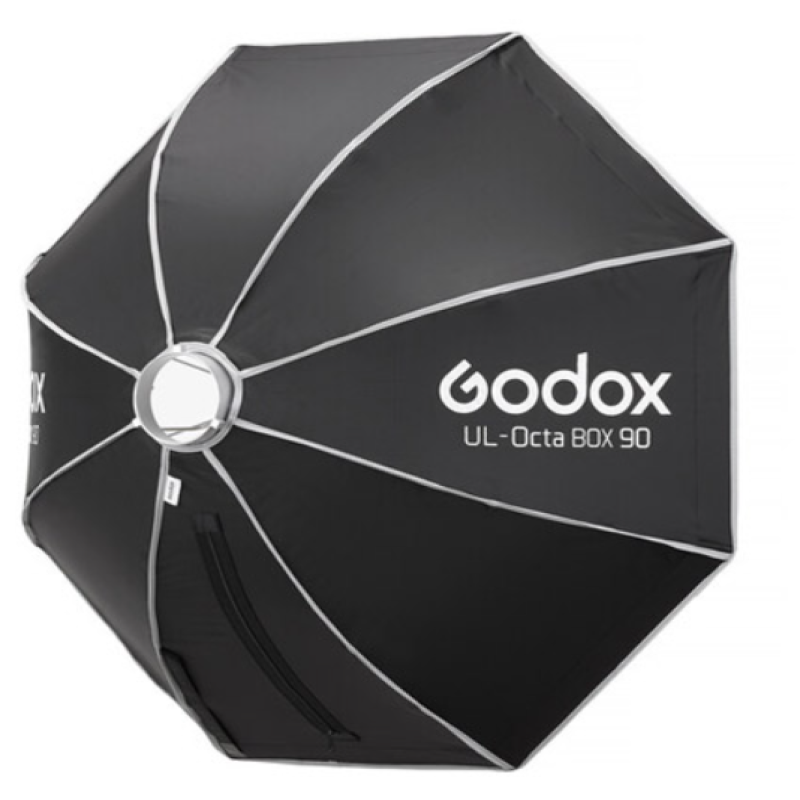 . Godox UL-BOX 90 (softbox 90 × 90 cm) Es un modificador de luz tipo softbox cuadrado de 90 cm con montura Bowens que produce una iluminación suave y uniforme, ideal para fotografía de retratos, moda, producto, bodas y video. Contenido: DESCRPCION 1 x Softbox UL-BOX-Octa-90 de 90cm de montura Bowens. 1 x Bolsa de transporte 2 x Difusores de tela traslúcida (interno y externo) 1 x rejilla