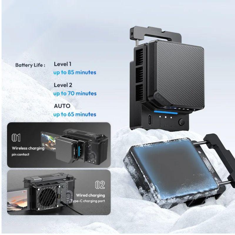 La batería magnética de 3000 mAh proporciona hasta 85 minutos de uso continuo, manteniendo tu cámara refrigerada durante los viajes. El soporte retráctil con resorte es compatible con el 99 % de las cámaras con pantallas articuladas, lo que garantiza un ajuste seguro sin riesgo de desprendimiento. El sensor NTC mantiene el enfriador a una temperatura constante de 8 °C, evitando la condensación y ahorrando energía con un control inteligente de la temperatura.