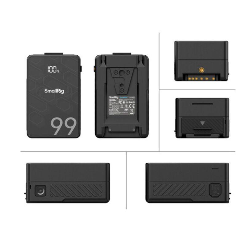Su diseño compacto y ligero lo hace ideal para quienes están siempre en movimiento, mientras que su conectividad versátil con múltiples interfaces, incluyendo USB-C y D-Tap, garantiza la carga simultánea de varios dispositivos. La intuitiva pantalla OLED proporciona actualizaciones en tiempo real sobre el estado de la batería, para que siempre estés informado. Además, la exclusiva tecnología PowerADC de SmallRig mejora la seguridad y la estabilidad de la carga. Con certificaciones como FCC, CE y RoHS, esta batería es sinónimo de calidad y fiabilidad. Ya sea en un plató de cine o al aire libre, la VB99 SE mini V Mount es la opción perfecta para cualquier situación.