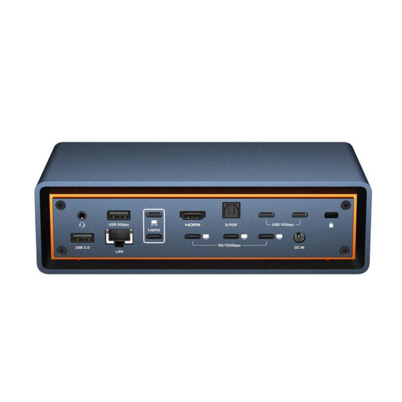 Equipado con un controlador Thunderbolt 5 y un chip DP-Alt, el FusionDock Max 2 ofrece un rendimiento estable en hasta tres monitores y todos sus puertos de datos. Los puertos Thunderbolt 5 y USB-C se conectan a tu MacBook mediante el cable USB-C doble incluido y admiten hasta 140 W de potencia.