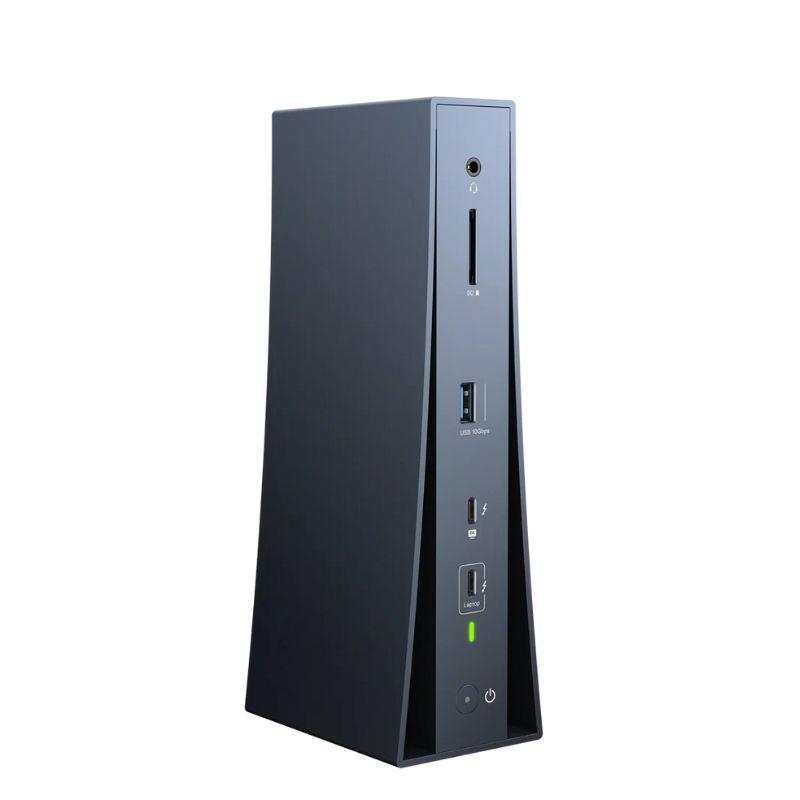 FusionDock Pro 3 combina tecnología Thunderbolt 5 de vanguardia, opciones de conectividad avanzadas y un diseño elegante y compacto para impulsar tu productividad. Compatible con dos pantallas 6K a 60 Hz en MacBooks y redes ultrarrápidas de 2,5 GbE, ofrece la solución de acoplamiento definitiva para profesionales exigentes.