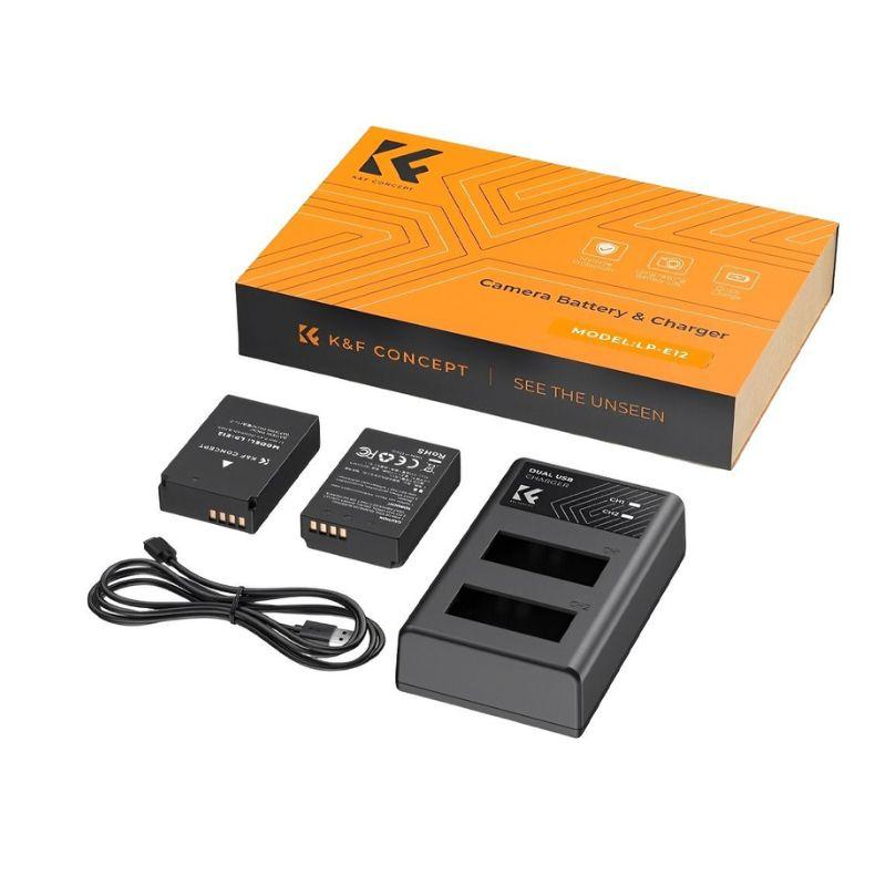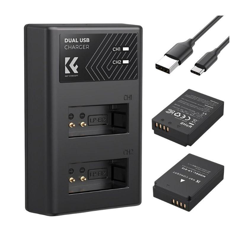 Kit Baterías + Cargador Doble K&F para Canon LP-E12 - Negro (KF28.0029)