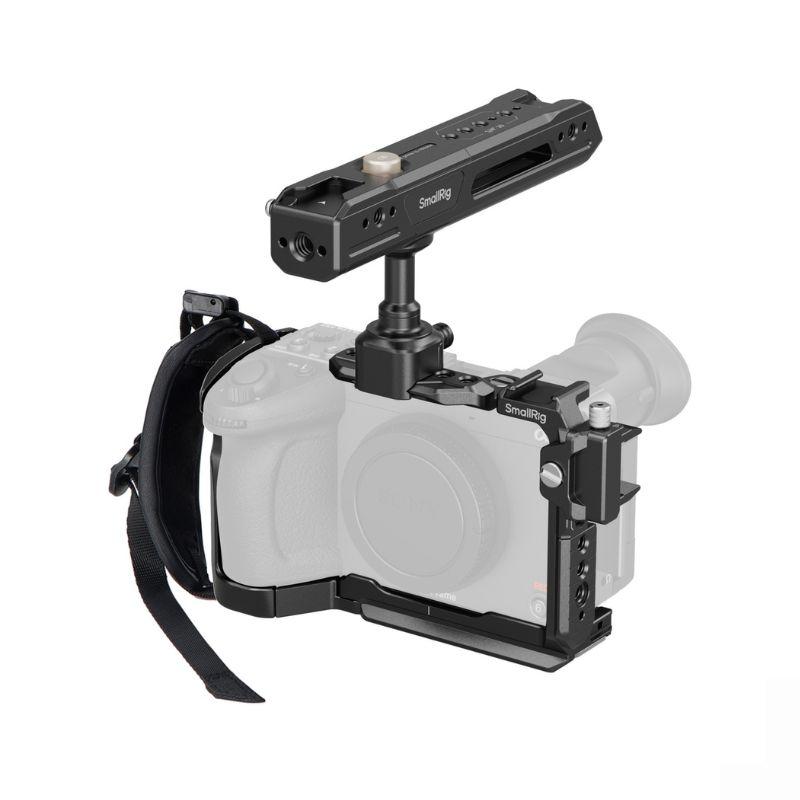 Riel NATO desmontable (placa superior): Compatible con el asa superior XLR de Sony o el asa superior giratoria de SmallRig (ID 4152) para un manejo fluido del visor electrónico.