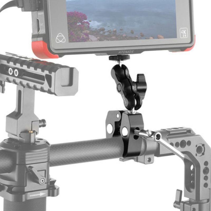 La abrazadera multifuncional tipo cangrejo 2164 con brazo de rótula de 3,5" de SmallRig le permite montar un accesorio de cámara con rosca de 1/4"-20, una luz pequeña u otro componente en una varilla o superficie que mida hasta 2" de ancho.