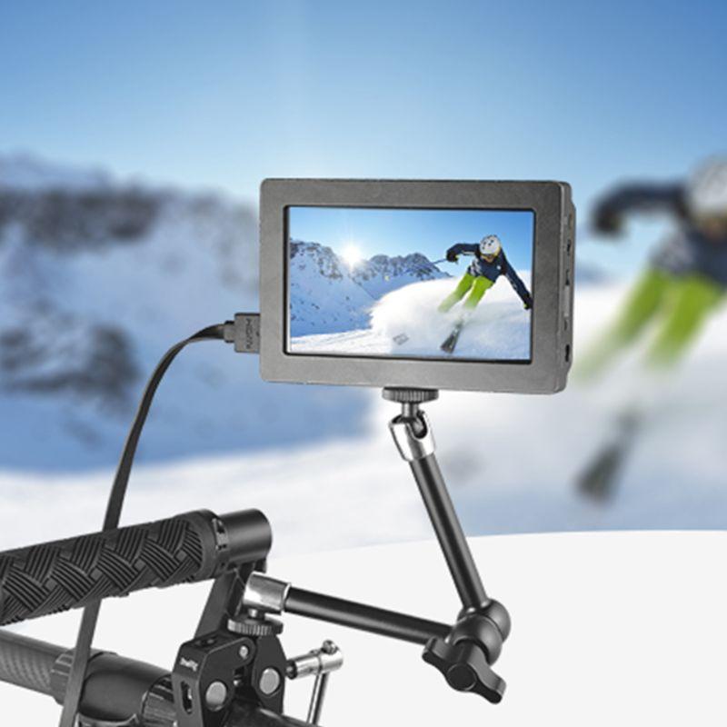 El brazo articulado SmallRig 2066B está equipado con tornillos de 1/4"-20 en ambos extremos. Esto permite fijar el monitor mediante un tornillo de 1/4"-20 en un extremo y acoplar accesorios con rosca de 1/4"-20 en el otro, como el riel NATO 1973.