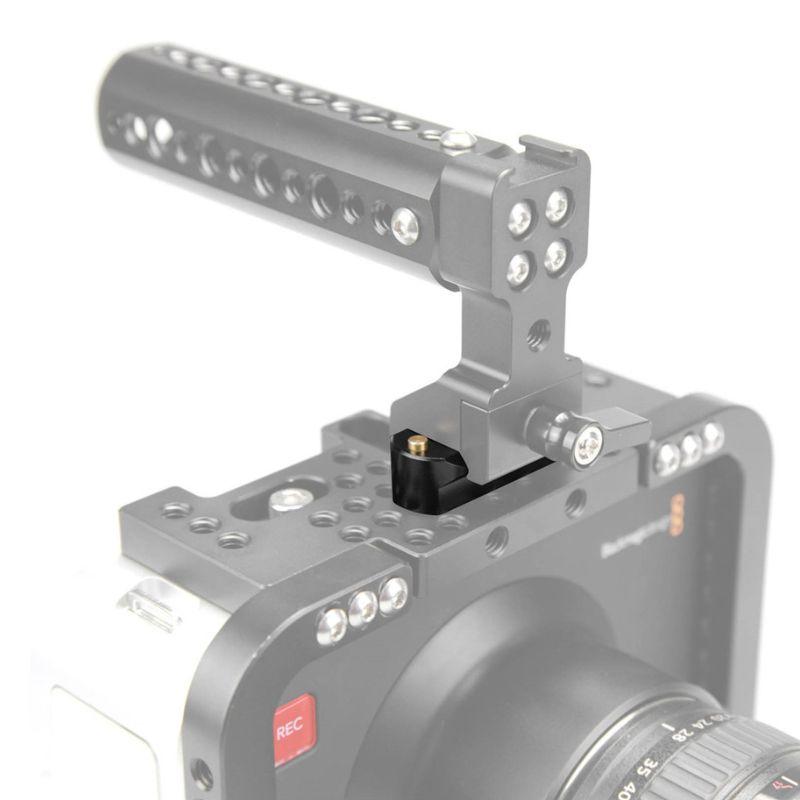 El riel de seguridad de liberación rápida estándar de 46 mm forma parte de nuestras empuñaduras QR. El pasador con resorte en cada extremo del riel evita la desconexión accidental de los accesorios. Compatible con RED Epic, Scarlet, Blackmagic Camera y otros accesorios de terceros.
