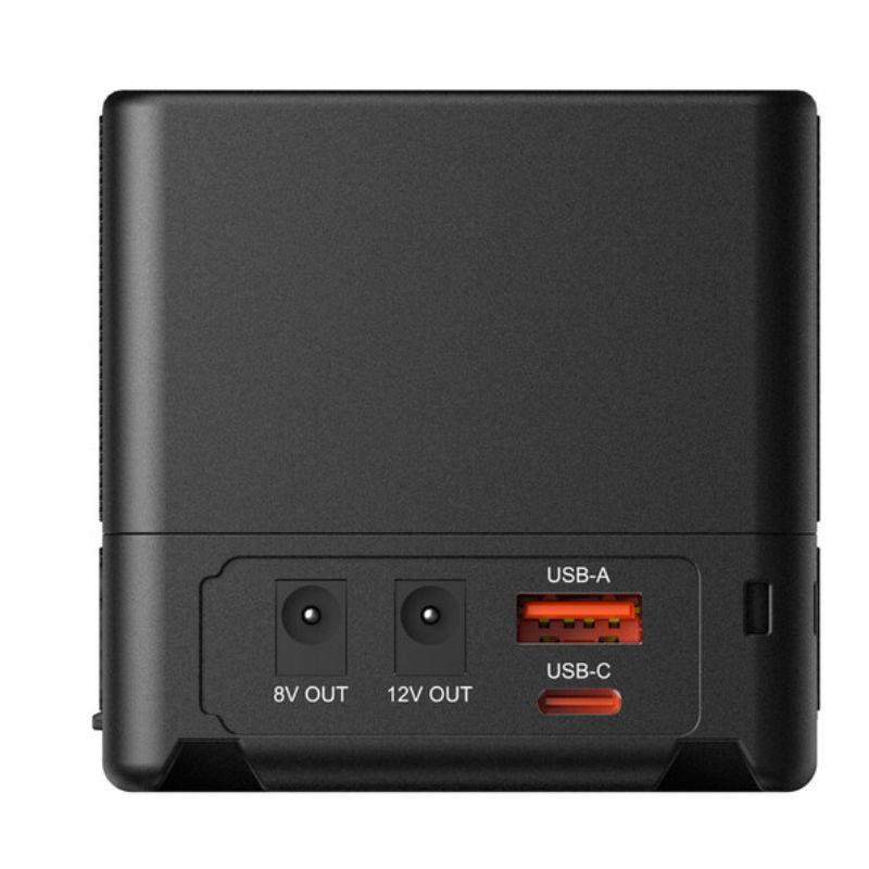 Equipado con múltiples interfaces, incluyendo BP, USB-C, D-Tap, USB-A y salida de 8/12 V, cada una con un circuito independiente para admitir la carga rápida simultánea de dispositivos USB-C y USB-A.