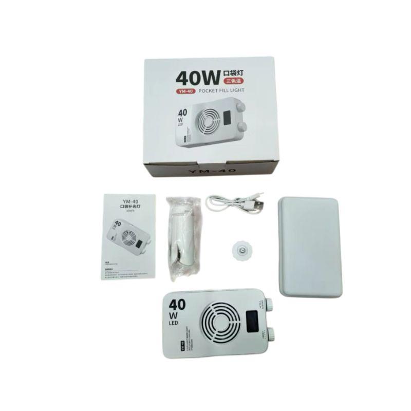 La luz LED RGBW profesional YM-40, una luz de estudio de video recargable, portátil y de bolsillo, es ideal para fotografía, videografía y maquillaje. Con temperatura de color ajustable (3000K-7000K) y control por interruptor, garantiza una iluminación precisa para diversas necesidades creativas.