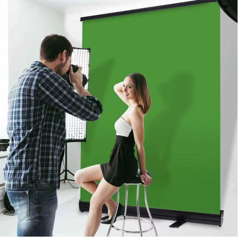 E-reise pantalla verde telón de fondo estilo Pull-up portátil plegable Chromakey fondo con marco de bloqueo automático