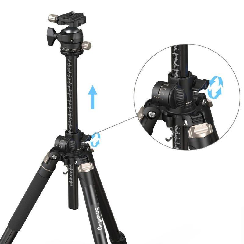 El trípode SmallRig KG CT200 tiene un sistema de nivelación rápido y suave. El trípode de aluminio de columna central lateral CT200 de SmallRig está diseñado con precisión para imágenes fijas y de video, transmisión en vivo, vlogging y más. La columna central se encuentra encima del trípode y se puede cambiar de vertical a horizontal o inclinar en segundos. La columna central se puede quitar y poner boca abajo para tomas de ángulo bajo.