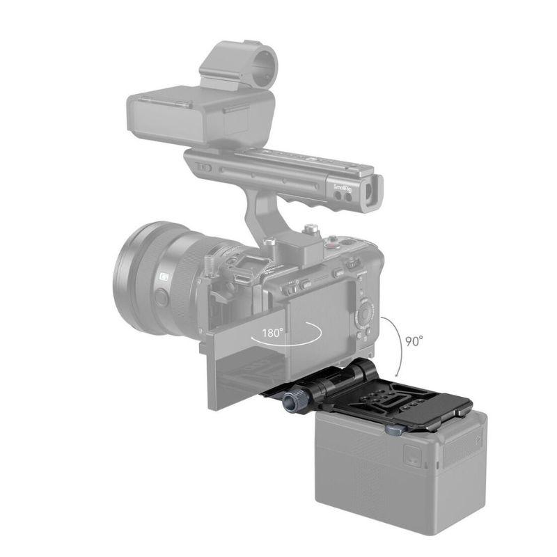 Monte su cámara DSLR o sin espejo en el sistema de montaje de batería SmallRig Compact V-Mount y conecte una fuente de alimentación de su elección a su equipo portátil o montado en trípode. Cuenta con el sistema se incluye una placa de batería con montaje en V, una placa de liberación rápida Arca-Swiss y una placa con montaje en V para ampliar sus opciones de energía. El sistema tiene una capacidad de carga total de 5 kilos, la estructura giratoria de la placa de batería V-Mount permite una rotación hacia atrás de 90°, lo que facilita el uso de la pantalla y adopta amortiguación para evitar que su dispositivo se caiga.